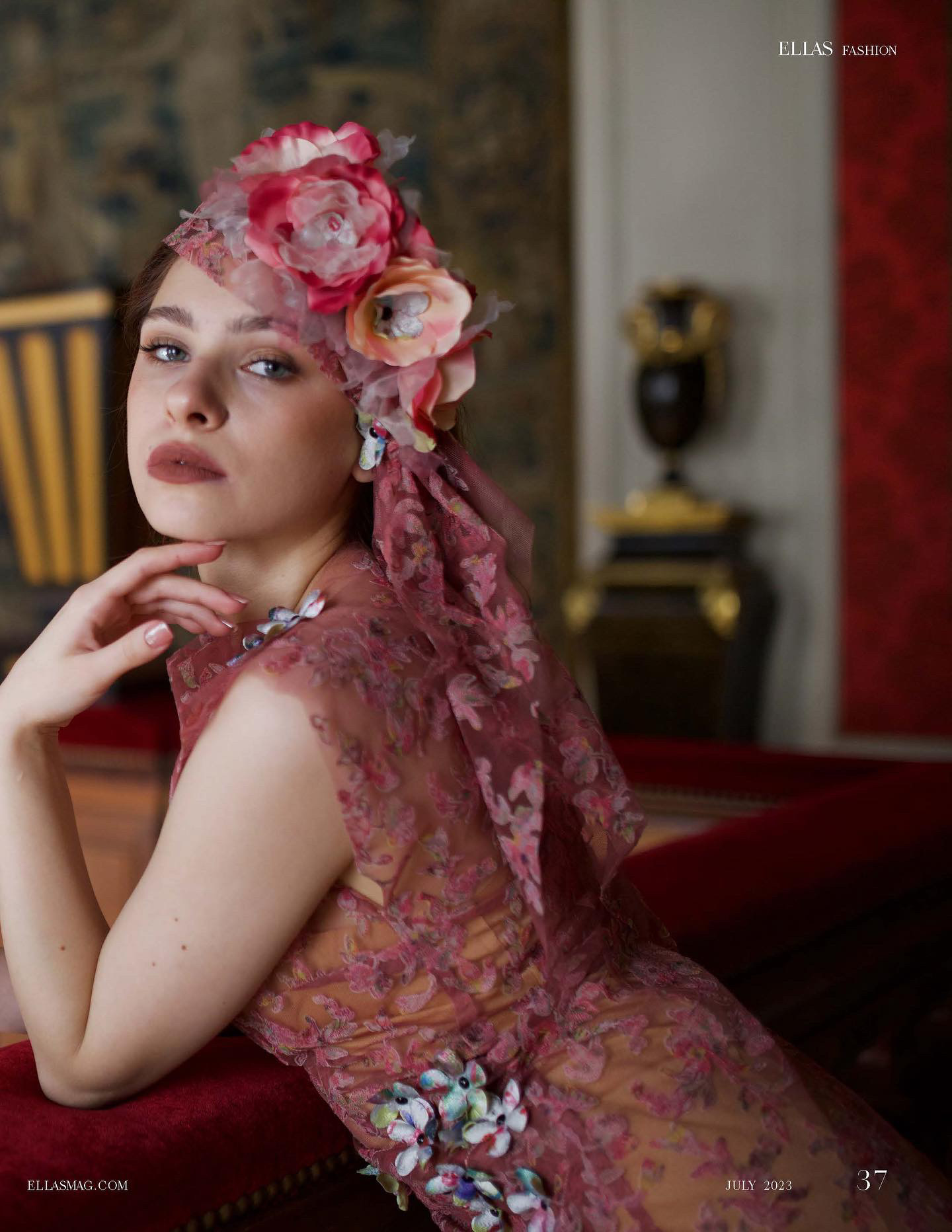Das Magazin ELLAS erblüht in einem Look aus transparentem, floralem Stoff, der Raffinesse und Zärtlichkeit in vollendeter Harmonie vereint.
